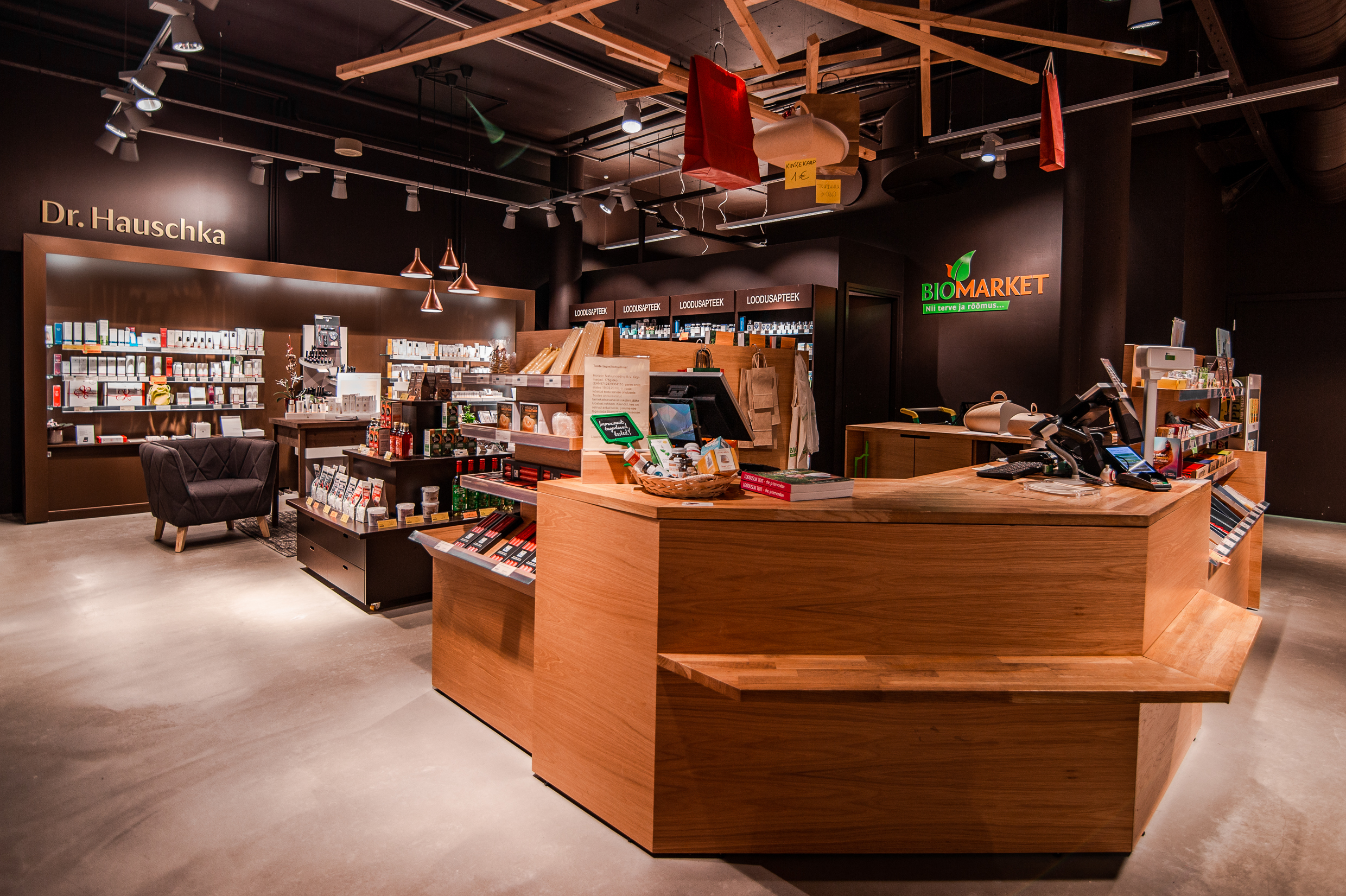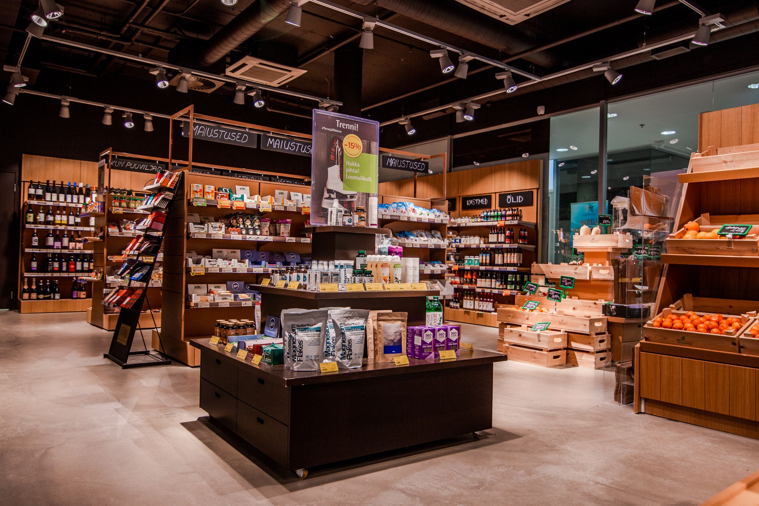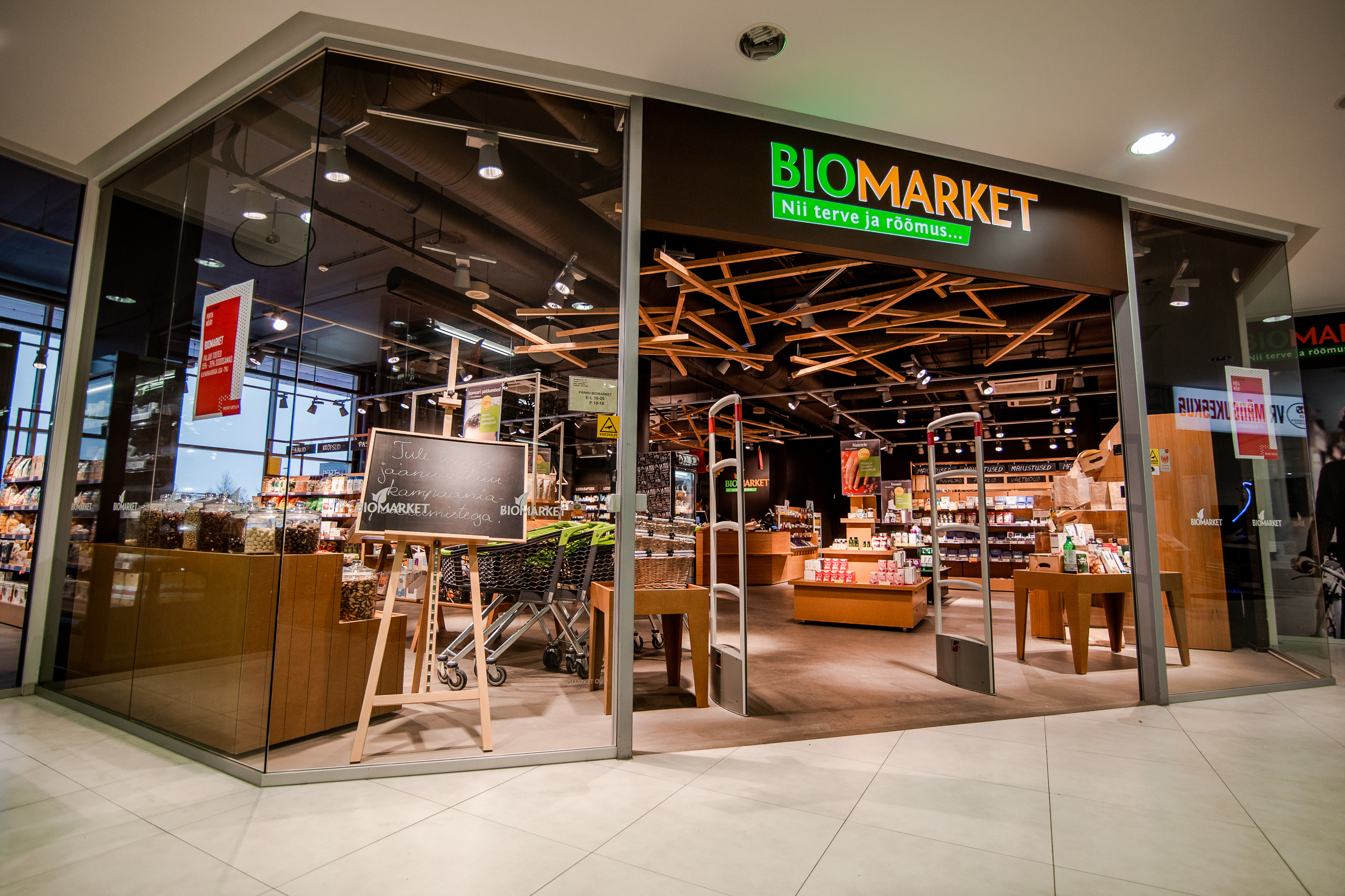 Pärnu Biomarketi ökotoidu valikusse kuuluvad peaaegu kõik toidukategooriad alates kodumaise mahekartuli, -piima, -munade ja ökojäätisega ning lõpetades ökobanaanide ja -veinidega. Uue kaupluse valikus on ka Dr. Hauschka looduskosmeetika ning ökoloogilised puhastusvahendeid nii ihule kui kodule. Samuti leiab kauplusest mitmeid looduslikke heaolutooteid, Primavera eeterlikke õlisid, Jaapani viirukeid, küünlaid jne. Pärnu Biomarketi loodusapteegi riiulid pakuvad tervise toetamiseks mitmeid taimedest valmistatud toidulisandeid ja väetoite.